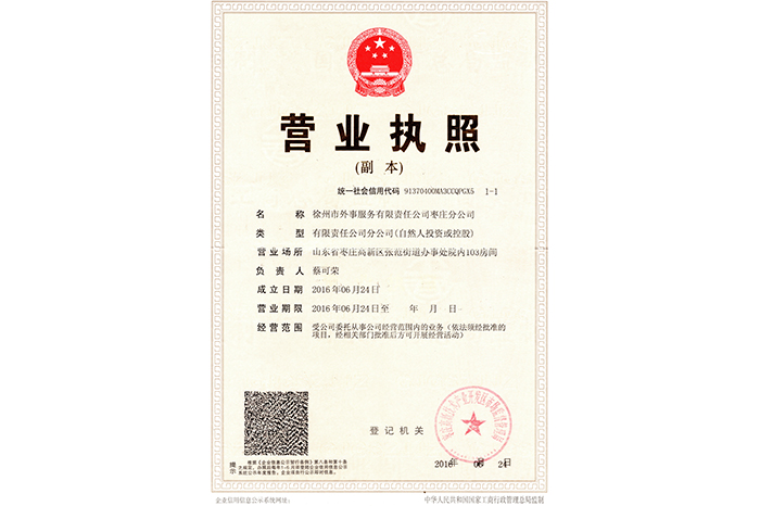 棗莊分公司營(yíng)業(yè)執(zhí)照